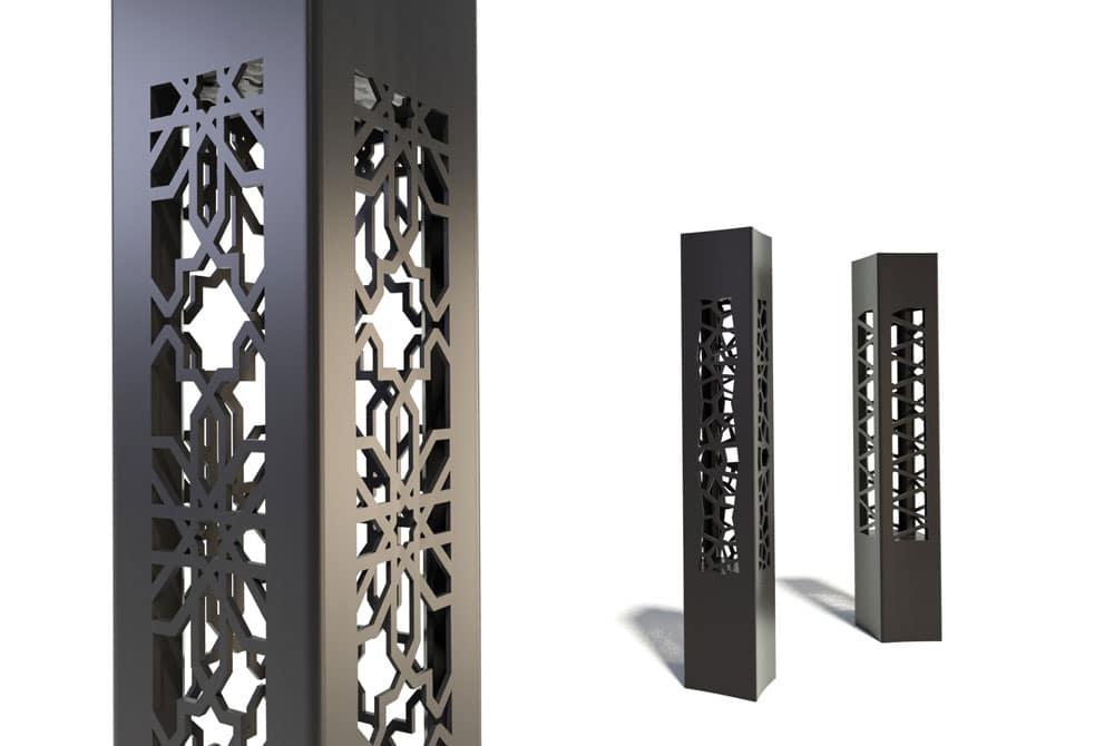 Creille tire son nom de sa structure aluminium ajourée. Eclairée de l’intérieur, son motif personnalisable lui confère une identité forte, évoquant un effet de cascade de lumière pour un éclairage décoratif ou d’ambiance tout en nuances. Creille est disponible sous forme de colonne ou de borne lumineuse.