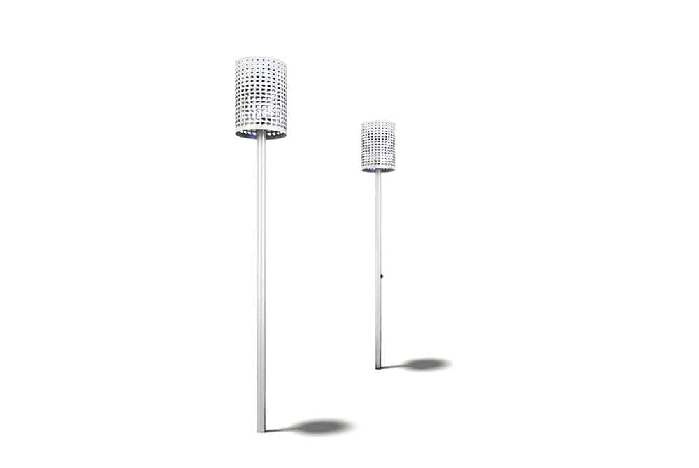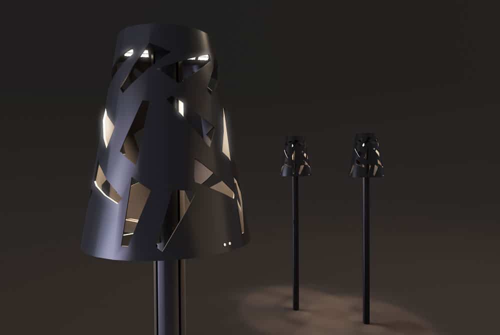 Lamp revisite l’éclairage extérieur d’ambiance avec sa silhouette joliment « rétro-contemporaine ». Son cône ajouré permet une mise en lumière tout en douceur des espaces publics. Le mât, équipé de rails techniques, facilite la mise en place de signalétique.