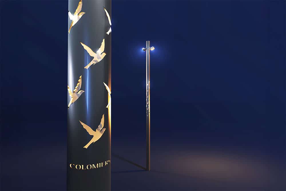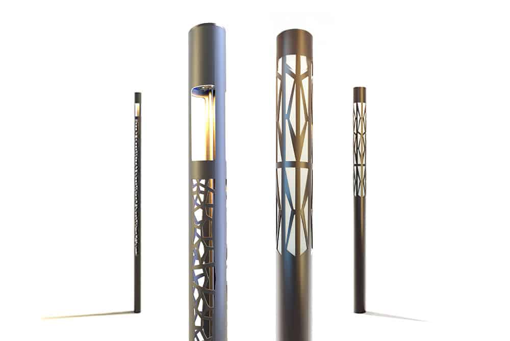 Colonne lumineuse au profil aluminium ajouré, Reille est la version cylindrique de notre incontournable Creille. Ce modèle de mobilier urbain d’éclairage est parfait pour mettre en valeur les aménagements urbains ou paysagers grâce à un éclairage d’ambiance doux et diffus. L’ajourage de la colonne est entièrement personnalisable.