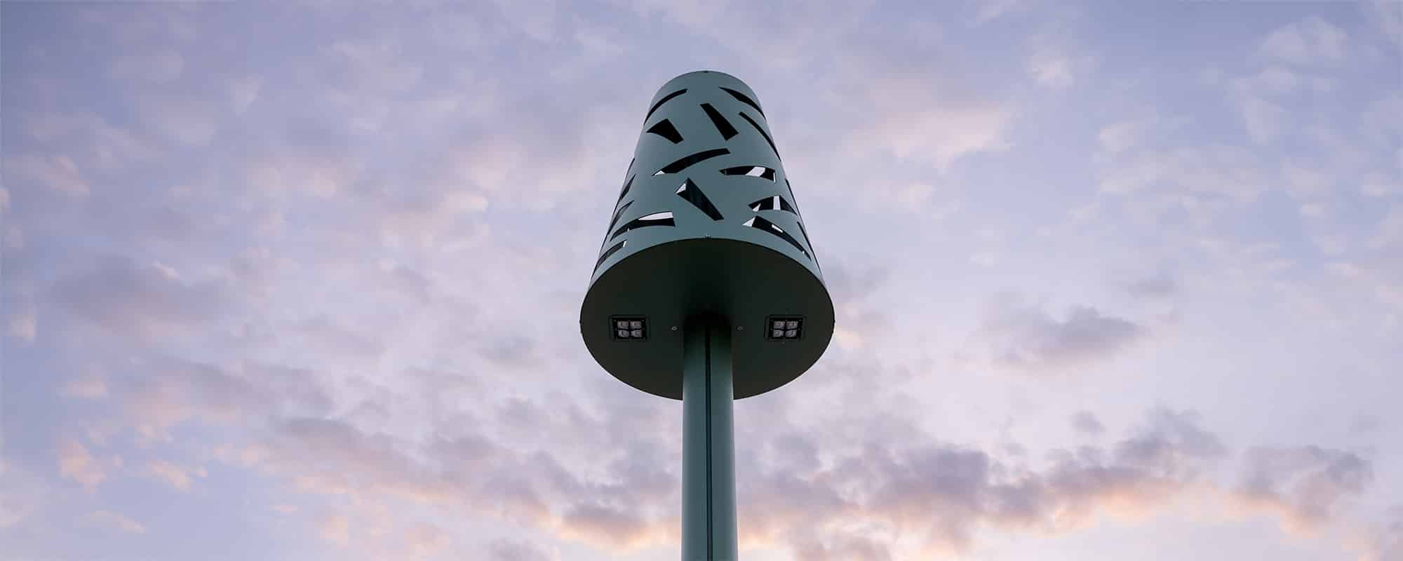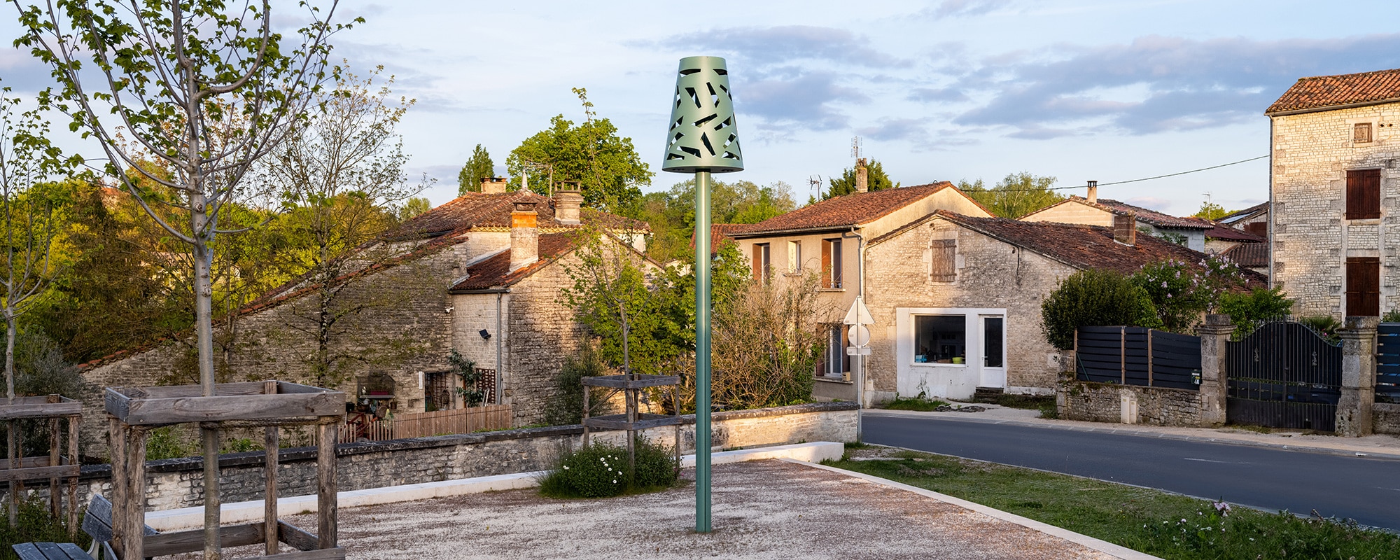 Le design rétro-contemporain de notre lampadaire Lamp s’accorde parfaitement à l’environnement. Le délicat ajourage offre une mise en lumière tout en douceur de la placette.