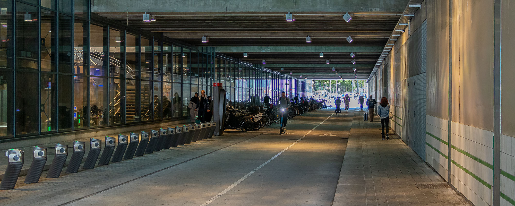 Le nouveau passage apporte confort et sécurité aux usagers avec un éclairage dynamique qui s’anime sur la paroi sud, au passage des vélos et des piétons, au travers de nos projecteurs Bernard avec verre matière.